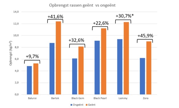 Figuur 4 Opbrengst ongeënte rassen