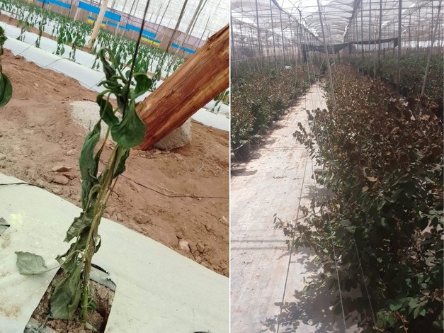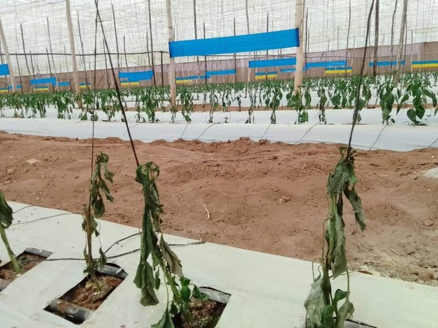 "De temperatuur in de kassen liep op tot 55 graden en de hittegolf bleef te lang aanhouden, tot 48 uur. Zelfs 's nachts daalde het kwik niet onder de 45 graden. De hitte ging ook gepaard met zandstormen."