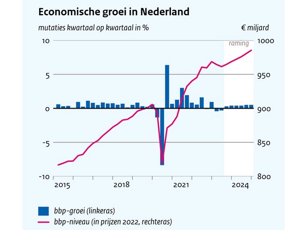 De laatste jaren heeft de Nederlandse economie een aantal grote schokken verrassend goed doorstaan. De coronacrisis, de oorlog in Oekraïne en de energiecrisis, de hoge inflatie en de stijgende rente hadden grote gevolgen voor veel huishoudens en bedrijven, maar de economie als geheel bleek veerkrachtig. Wel kromp de economie licht in de eerste kwartalen van dit jaar, vooral door dalende uitvoer en consumptie. Voor heel 2023 en ook voor 2024 wordt een magere economische groei verwacht. De inflatie blijft met 3,9% in 2023 en 3,8% in 2024 langer hoog dan eerder werd verwacht.