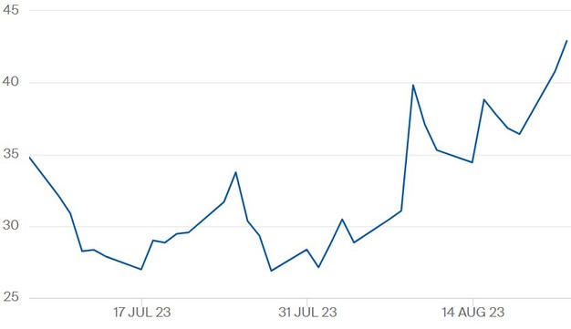 TF-gasprijs contract 'september 2023' t/m 22 augustus 2023. Klik hier voor vergroting en de meest actuele cijfers.
