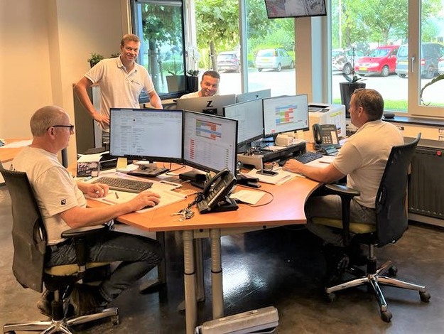 Robbin van Veldhoven, Dennis van Veldhoven, Sito Berkhout en Steef Bruinen. Robbin, Sito en Steef doen de planning van Veldhoven Loonwerk.
