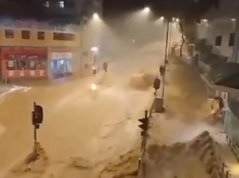 In de nacht van donderdag op vrijdag vielen er stortregens in Hongkong, wat leidde tot grootschalige overstromingen in de stad, waardoor straten, winkelcentra en metrostations onder water kwamen te staan en de autoriteiten scholen sloten en werknemers vroegen thuis te blijven.