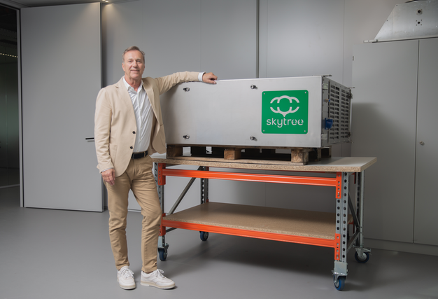 "Uit gesprekken hebben we gemerkt dat de huidige CO2-voorziening uit fossiele brandstoffen meestal niet wordt meegenomen in de levenscyclusanalyse (LCA) van elk teeltbedrijf", zegt Rob van Straten, CEO van Skytree. Skytree introduceert Skytree Cumulus, een eerste Direct Air Capture (DAC) modulaire unit die op de markt is gebracht. Zodra het apparaat op locatie in een vertical farm, kas of een ander indoorteeltbedrijf is geïnstalleerd, vangt het CO2 uit de omgevingslucht op en maakt dat beschikbaar voor de teelt van gewassen, algen, bloemen en het maken van vaccins.