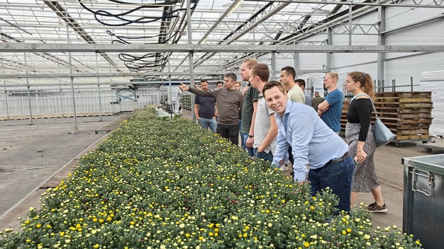 In de kas stonden op het moment violen, primula, potchrysanten en kerststerren. Daarnaast stond op 15 hectare een teelt met tomaat voor de lokale markt, een unieke combinatie. Binnen het bedrijf zijn er diverse processen volledig geautomatiseerd en wordt er gebruik gemaakt van een eigen app met alle informatie over personeel, orders, teelt en energie. Als afsluiter mochten we nog een kijkje nemen in de biomassacentrale. Deze biomassacentrale draait volledig op snoeiafval uit de regio en voorziet op deze manier de kwekerij van warmte en elektriciteit.