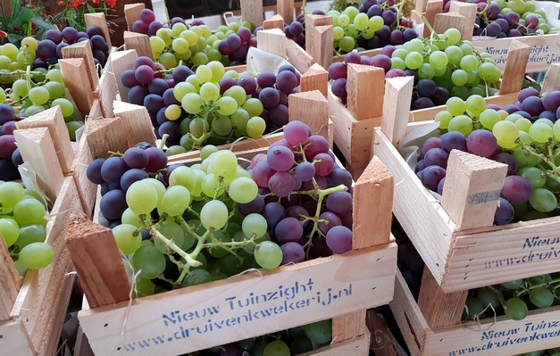 Vanaf vandaag, 6 oktober, wordt de Emile Royal geoogst bij Druivenkwekerij Nieuw Tuinzight. "Of de “Royale” zoals onze Belgische zuiderburen het zo liefkozend kunnen zeggen. In het Westland heet deze sappige, grote blauwe druif “Blauwe Emiel”. Dat klinkt ’n stuk minder romantisch maar what’s in a name? ’t Is gewoon ’n lekkere druif", vertelt Hilde Jansen.