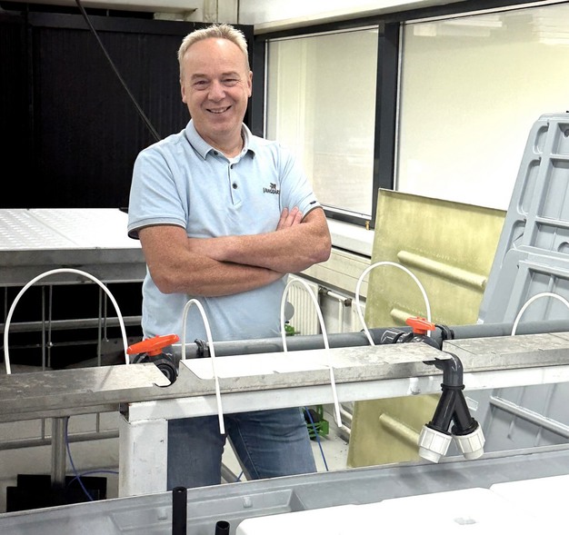 Tholen - Bij teelt op tafels loop je bij de watergift vaak tegen een probleem aan: het water komt zo hard binnen, dat de planten aan het begin van de tafel, bij de inlay, als het ware overdonderd worden, en er ontstaat algengroei omdat het water er blijft staan. Bij Meteor Systems hebben ze daar nu wat op gevonden: een E&V inlay met een waterintredezijde die niet recht, maar schuin afloopt.