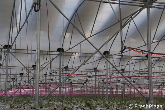 Kas met Led-belichting. De hoeveelheid licht opschalen kan ook op Sicilië doorslaggevend zijn. (Klik hier om de fotoreportage te bekijken)