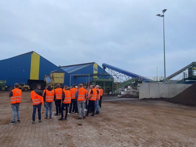 De tour startte met een bezoek aan zusteronderneming Olde Bolhaar Ecoservice. De dochteronderneming van Klasmann-Deilmann verwerkt groenafval voor optimaal en milieuvriendelijk hergebruik als hoogwaardige compost in diverse varianten. Dat doen ze ook met gecomposteerde boomschors voor onder andere boomkwekerij, vaste planten en potplanten. De huidige capaciteit bark bij Olde Bolhaar Ecoservice van 20.000 m3 wordt onder andere door een nieuwe productielocatie binnenkort verhoogd naar een capaciteit van 100.000 m3.