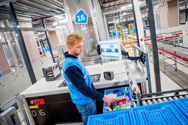 Begin volgende week gaat het nieuwe, gemechaniseerde Home Shop Center (HSC) van Albert Heijn van start. Hier rollen de bestelde boodschappen in bakken automatisch over een ingenieus, geautomatiseerd netwerk van rails om bij elkaar te komen in de bekende blauwe boodschappenkratten die bij klanten thuisbezorgd worden. Het nieuwe HSC staat in Barendrecht en gaat wekelijks 45.000 bestellingen verzorgen.