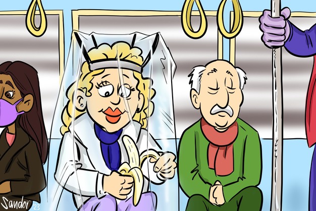 Een opmerkelijk tafereel schudde het internet op wegens een filmpje van een vrouwelijke treinpassagier die een banaan eet terwijl ze gehuld is in een gigantische plastic zak. De beelden zijn opgenomen door een medepassagier genaamd Wang in Wuhan, Hubei. "Hoewel er sporadische uitbraken van het coronavirus in Wuhan zijn, lijkt het een beetje extreem voor deze vrouw om zichzelf op deze manier te beschermen", zette hij onder de video.
