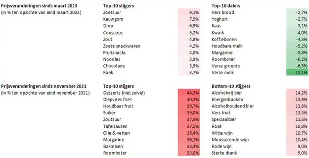 Het zijn twee enerverende jaren geweest sinds Rabobank in november 2021 haar verwachting uitsprak dat de op dat moment al ongekende kosteninflatie tot verhitte prijsonderhandelingen zouden leiden. En toen moest de oorlog in Oekraïne nog beginnen. Inmiddels liggen de consumentenprijzen in de Nederlandse supermarkt gemiddeld 25 procent hoger dan destijds, met uitschieters naar meer dan 40 procent voor bijvoorbeeld diepvriespatat en houdbaar fruit. De consument is door deze hoge inflatie anders boodschappen gaan doen.