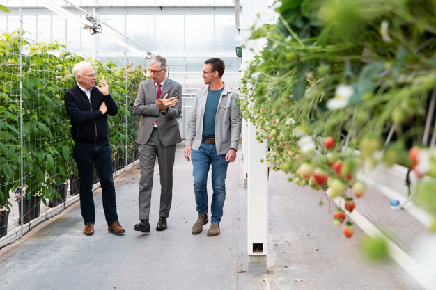 Op maandag 6 november bezocht demissionair minister Piet Adema van Landbouw, Natuur en Voedselkwaliteit, Van der Avoird Trayplant, de winnaar van de Tuinbouw Ondernemersprijs 2023. De minister kreeg uitleg bij het vierlagenteeltsysteem waarbij één hectare frambozenplanten dezelfde opbrengst heeft als een vollegrondsteelt van 240 hectare.