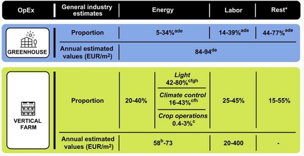 De kosten van kassen zijn bijna verdrievoudigd. In 2014-2017 verbruikten ze 100-165 euro/m², en in 2021-2022 stegen deze kosten naar 300 euro/m². Wanneer deze getallen vergeleken worden met vertical farms blijkt dat die 8 tot 15 keer duurder zijn dan kassen wat betreft kapitaaluitgaven.