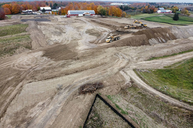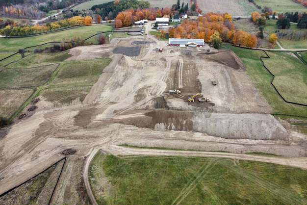 De afgelopen werken is er hard gewerkt om de grond van het bouwterrein van Kinghaven Farms op de juiste hoogte te brengen. Wanneer het project is afgerond moet de kas Toronto en omgeving voorzien van lokale sla.