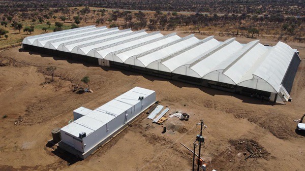 Het aquaponics-teeltbedrijf in de doornstruiksavanne van centraal Namibië (foto's geleverd door Oribi Aquaponics).