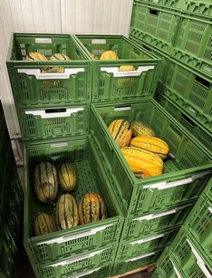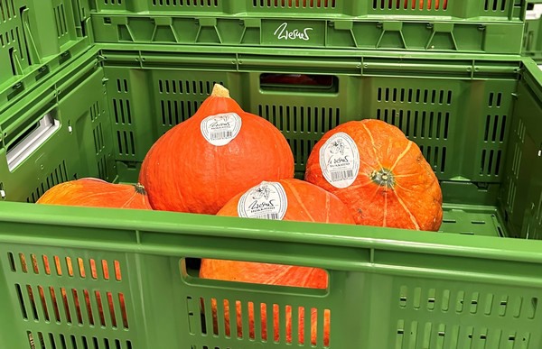 Klapkratten worden steeds vaker gebruikt in de moderne tuinbouw. Het familiebedrijf Gemüsehof Werner, gevestigd in het Duitse Deinste in Nedersaksen, vertrouwt ook op de klapkratten van Ringoplast voor het verpakken van zijn pompoenen. De klapkrat van 600 x 400 x 233 mm werd geproduceerd in groen met witte vergrendelingshendels. Het bedrijfslogo werd ook in het wit op de doos gedrukt. De klapkratten worden niet alleen gebruikt voor de opslag en het transport van standaard Hokkaido pompoenen, maar worden ook al met succes gebruikt voor spaghettipompoenen, meldt het bedrijf.
