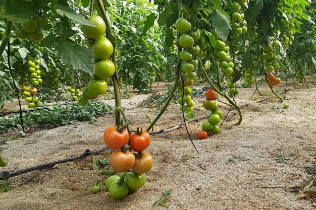 In de omgeving van Níjar bezit het nieuwe bedrijf meerdere kassen en een bio-pakstation. "We hebben 100 hectare tomatenteelt verdeeld over twee kassen. De gewassen doen het tot nu toe zeer goed, met een opbrengst van ongeveer 9-10 kilo per vierkante meter", zegt Juan Pérez, teelttechnicus bij Biogrow Farms, vergezeld door Juanma Zapata, verkoper bij het bedrijf, terwijl ze door de kassen lopen en de trostomaten bekijken die bijna rijp zijn.