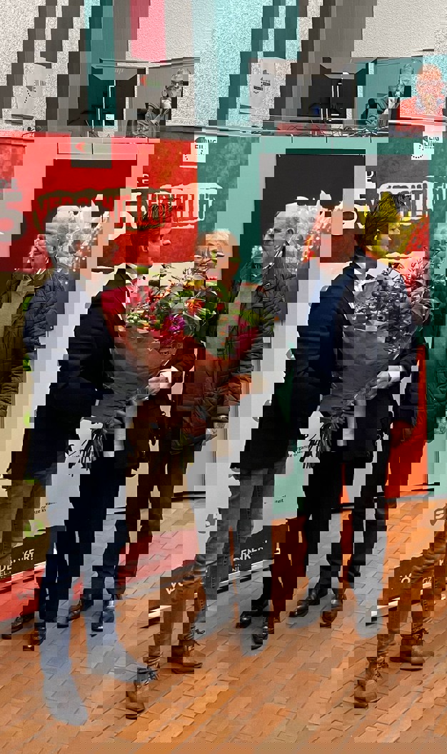 Dubbel feest bij Veiling Zaltbommel vanmorgen. Leen van Weenen (Van Weenen Groente en Fruit) is 75 jaar groenteman en 65 jaar getrouwd met zijn vrouw Riet. Daar werd vanmorgen, voor het draaien van de veilingklok uiteraard even aandacht aan geschonken op de veiling. Leen van Weenen is immers niet weg te denken als klokkoper bij Veiling Zaltbommel.