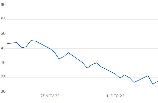 TTF-gasprijs contract 'januari 2024' t/m 20 december 2023. Klik hier voor vergroting en de meest actuele cijfers.