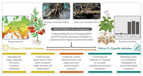Door klimaatverandering en genetische selectie komen wortelknobbelaaltjes steeds noordelijker in Europa voor en zijn cystenaaltjes steeds moelijker te beheersen. Daarmee vormen deze parasieten een toenemend gevaar voor de teelt van aardappelen en tomaten. Om de opmars goed in beeld te krijgen en passende en duurzame oplossingen te vinden voor het probleem, start WUR met zeventien Europese partners een groot onderzoeksproject: NEM-EMERGE. Een toekenning binnen het Horizon Europe-programma levert het consortium een steun op van 7 miljoen euro.