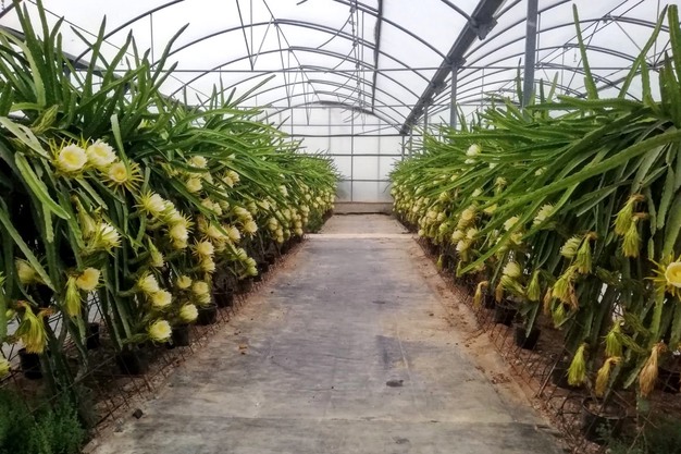 Het dragonfruitareaal is de afgelopen jaren gegroeid, met name in de provincies Valencia, Alicante en Murcia, zegt José Manuel. "Wij hebben twee plastic kassen van elk 1.500 vierkante meter en een constructie van 500 vierkante meter met gaas, maar het verschil in opbrengst is overduidelijk. In de plastic kassen is de oogst twee tot drie keer zo groot", vertelt José Manuel.