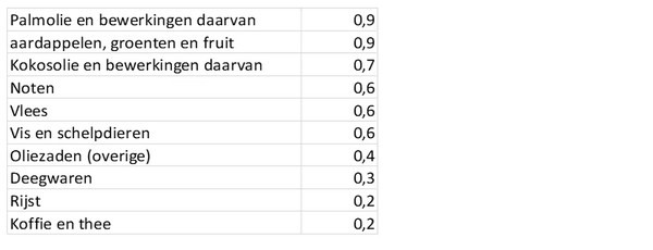 Volgens het CBS importeerde Nederland in 2022 in totaal voor 88 miljard euro aan landbouwgrondstoffen en voedingsmiddelen. Veruit het grootste deel van deze import kwam uit andere Europese landen. Uit Azië en oost-Afrika kwam naar schatting voor 8,5 miljard euro aan landbouwgrondstoffen en voedingsproducten naar de Nederlandse havens. De belangrijkste importproducten uit deze regio's zijn palmolie, kokosolie, cashewnoten, garnalen, druiven, avocado's, gember en sommige soorten koffiebonen (zie figuur 1). Niet alle handelswaar heeft Nederland als eindbestemming.