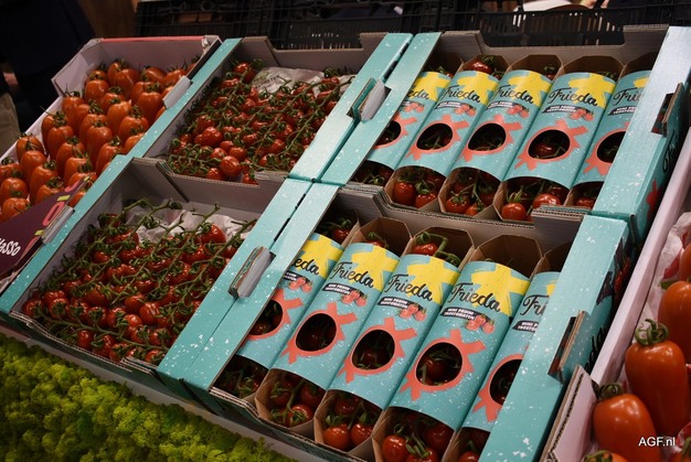 Tholen - Op de afgelopen Fruit Logistica heeft Coöperatie Hoogstraten, haar nieuwe merk Frieda, geteeld door de telers van Tomeco, tentoongesteld aan het beurspubliek. Met het merk willen de partners hun smaakvolle mini pruimtrostomaatjes van een frisse eigen identiteit voorzien. "Voor de consument is een kleine rode tomaat vaak gewoon een kleine rode tomaat, maar er zit veel verschil tussen de variëteiten. Met een uniek design willen we dit graag benadrukken", vertelt Tom Verdonck van Tomeco.