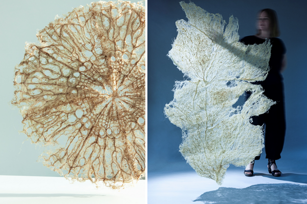 Zena dacht erover om functionele producten te maken met dit materiaal. Met haar expertise, zorg en creativiteit heeft ze een groot aantal vezels en wortels omgezet in designstukken, mode en sieraden.