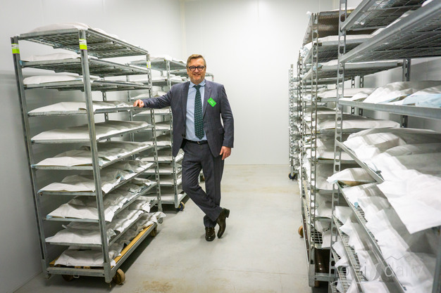Vanuit de kantine van de nieuwe roofmijtenfaciliteit zijn nog kleine kassen te zien vergelijkbaar met die voorheen op deze locatie stonden, maar in de productiefaciliteit zelf heb je meer het gevoel in een futuristisch laboratorium te zijn. Behalve gisteren dan, want voor de opening van de nieuwe faciliteit was alles feestelijk aangekleed. Werknemers en genodigden konden zien hoe de 4.000m grote hal ingericht is met gebruik van gerecycleerde materialen en fraai design een plek wordt om ca 50 werknemers schoon, efficient en prettig te werken.Door gebruik te maken van de nieuwste technologieën en innovaties draait de nieuwe productiefaciliteit van Biobest volledig op groene energie en is deze vrij van fossiele brandstoffen. De faciliteit beschikt over een warmtepompsysteem, luchtbehandelingskasten, een hoogwaardige warmtewisselaar voor maximale energieterugwinning en een PV-installatie die 416.000 kWh per jaar genereert, wat betekent dat de CO²-uitstoot op de hele vestiging in Westerlo met 15%, oftewel 44 ton, teruggedrongen wordt.