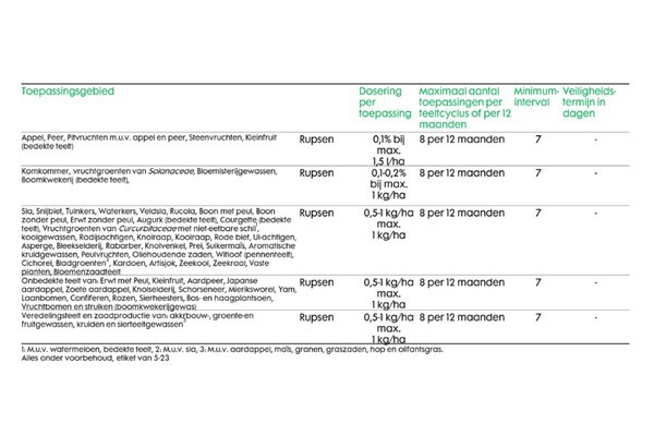 Gebruik 1 kg per ha (met voldoende water om een optimale bedekking te realiseren)