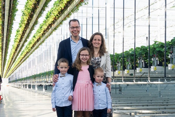 Jan met gezin bij de opening van een nieuwe kas vorig jaar voorjaar.