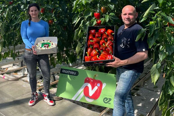 Het nieuwe blokpaprikaras E20B.0572 van Enza Zaden krijgt een naam: Mathieu. Afgelopen jaar stond dit ras in de screening van Enza Zaden en in proeven bij enkele telers. Dit jaar wordt het ras geteeld op twee locaties, één kas bij Renier Janssen en één kas bij Wilfred van den Berg van paprikakwekerij Bestpeppers.