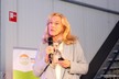 Claudia den Braver van Plantum speld Gé een speldje op voor zijn verdiensten voor de gewasgroep Aardbei.