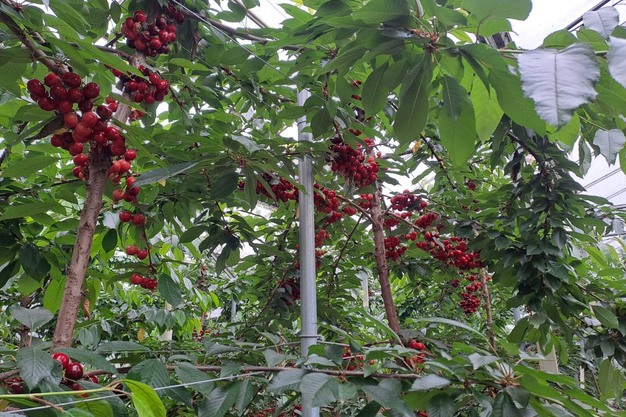 Een aantal jaar geleden besloot Benoit zich met een overgebleven deel van de serre te richten op de kersenteelt. Een redelijk unieke stap in Vlaanderen, waarbij in eerste instantie zelfs de adviseurs van pcfruit niet konden vertellen of het zou werken. "Het was in het begin zelfs de vraag of het rendabel zou zijn. Na wat contact met Nederlandse collega's, die er wel al ervaring mee hadden, besloten we toch de stap te wagen", vertelt Benoit. "Vorig jaar hadden we de eerste volwaardige oogst, waarbij ons werd verteld dat we konden rekenen op ongeveer een kilo per boom, maar daar zijn we toch fors overheen gegaan. Dit jaar zien de producties er nog aanmerkelijk beter uit dan verleden jaar. Volgend seizoen verwachten we op de piek van de productie te zijn, dus je kunt toch wel stellen dat het een succesverhaal is gebleken."