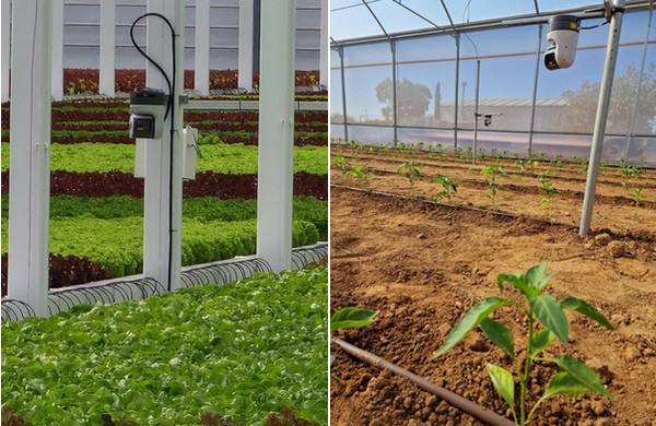 Links: Gardin Sensor in FromBoer Lettuce Farm. Rechts: Gardin Sensor in Bayer