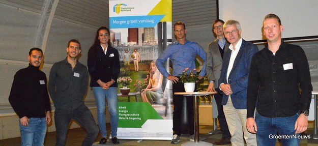 Martien Visser, 2e van rechts, tijdens een bijeenkomst van Tuinbouwjongeren Nederland over energie, november 2022.