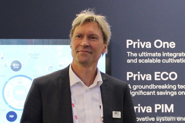 "Tijdens mijn eerste gesprek met Meiny Prins ging het hier al over", deelt hij woensdag met een select groepje verzamelde vakpers. "We maken als bedrijf nu een slag van een relatief gesloten naar een meer open bedrijf met Priva One, waarbij we ons richten op integratie van systemen voor de teler. Als Priva willen we het brein, hart en de ziel zijn van de kas."