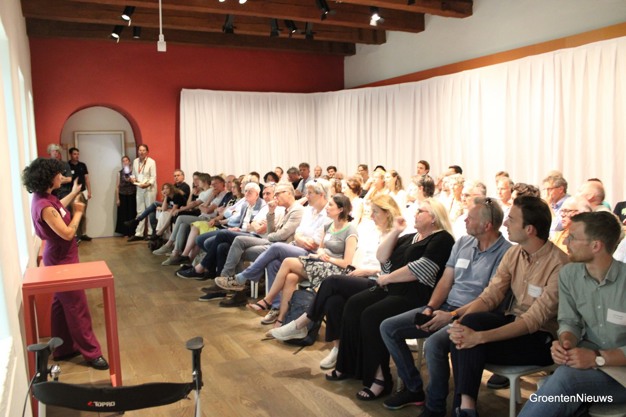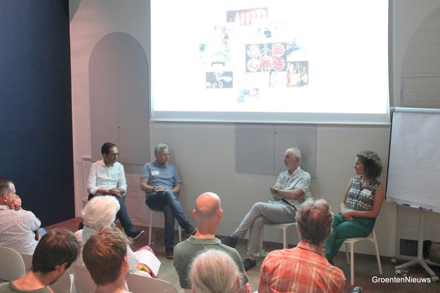 De bonte verzameling mensen die op de middag af is gekomen, waaronder veel mensen uit de regio Amsterdam, maar ook enkele tuinbouwbekenden, krijgt woensdag eerst een kort inleidend plenair praatje van Atoesa Farokhi van de Amsterdam Green Campus van de Universiteit van Amsterdam voorgeschoteld. Ook Peter Maes en Frank Bakkum vertellen kort iets over het belang van de bijeenkomsten op woensdag. Frank: "Ik ben blij dat ik, anders dan afgelopen vrijdag bij de Dag van de Voedseltransitie hier in Amsterdam nu juist ook veel mensen zie die ik niet ken."