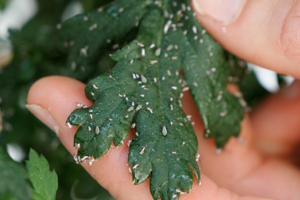 Op de bankerplanten zitten bladluizen die niet schadelijk zijn voor het gewas.