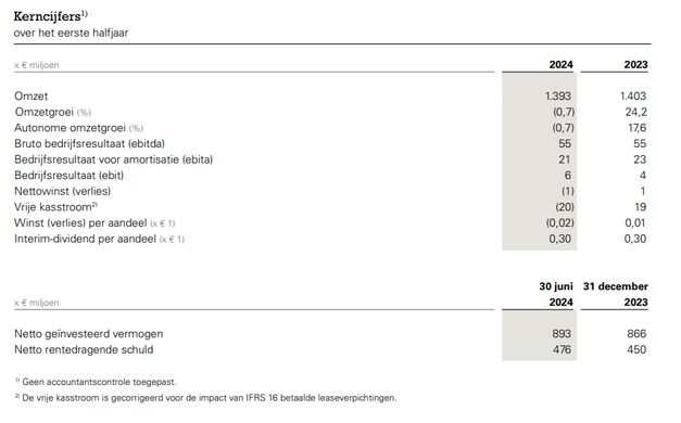 In Nederland was de autonome groei 0,5% en in België nam de omzet autonoom af met 6,9%. De prijsontwikkeling, gedreven door inflatie, was in de eerste jaarhelft circa 2%.