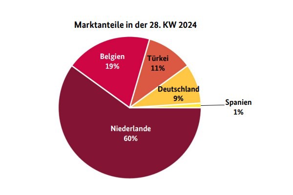 Het binnenlandse aanbod overheerste en werd op bepaalde punten geflankeerd door Nederlandse, Poolse en Belgische producten. De activiteit was gemengd: terwijl de afzet in Hamburg en Frankfurt gunstig was door het wisselvallige weer, bleef de vraag in München achter bij de verwachtingen.