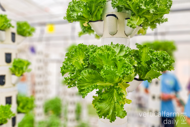Aan de voet van de kweektorens wordt ongebruikte ruimte opgevuld met ruimte voor andere producten, zoals sla.