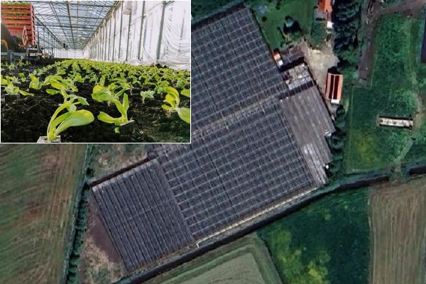 Luchtbeeld Google Earth met inzetje teelt in kas uit archief, 2018