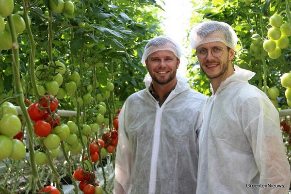 Erwin en Ties in de kas in Kwintsheul tussen het ras Ronvine