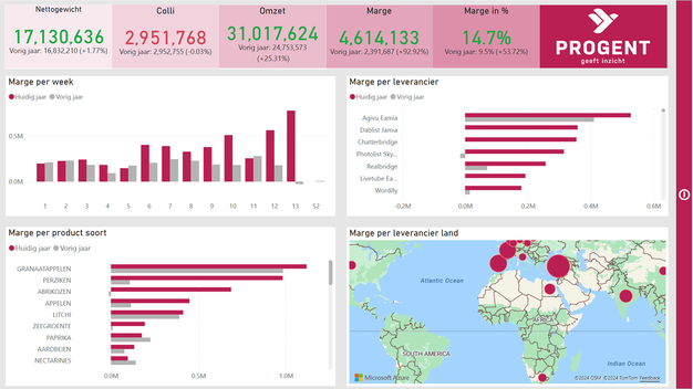 Eén van de AGF-bedrijven die sinds dit jaar met de Power BI oplossingen van Progent werkt is Fair Connection uit Ridderkerk, specialist in druiven, citrus en avocado. "Via iemand die bij ons de software-implementatie deed, hoorden we goede verhalen van Progent en hij heeft ons niet teleurgesteld. Dankzij deze modules krijgen we goed inzicht in onze eigen cijfers en kunnen we ook mooie rapportages overleggen aan onze retailklanten. Als we dat zelf zo voor elkaar zouden willen krijgen, was je daar heel veel tijd aan kwijt. Nu hebben we in een paar klikken een fantastisch overzicht."