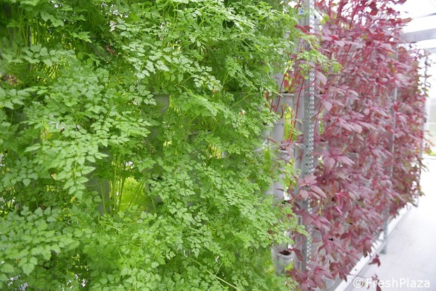 In de kas vind je basilicum, Gentilina sla, mizuna (Japanse rucola), kervel, amarant, Romeinse munt, Japanse kool, snijbiet en spinazie in de kas. Met een druppelirrigatiesysteem krijgen de planten water, dat vervolgens wordt opgevangen voor hergebruik.