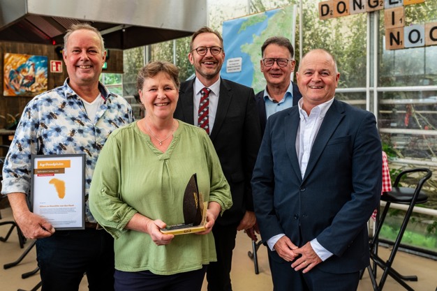 De provincie Noord-Brabant heeft veel waardering voor de manier waarop Henriëtte en Alfons van den Hoek een bedrijf opbouwden dat geheel gestoeld is op biologische teelt. Die waardering is begin oktober uitgedrukt met het uitreiken van een Agrifoodpluim.