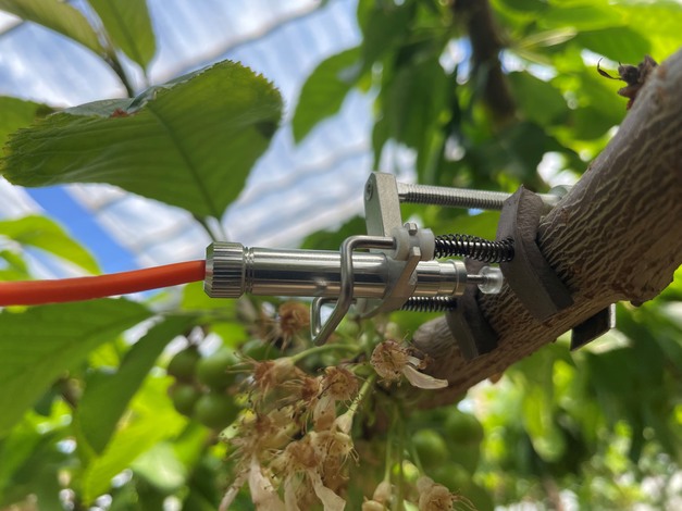 Een kersenteler in Hongarije werkte samen met Gremon Systems om oplossingen te vinden om het barsten van fruit te voorkomen. Met behulp van dendrometers, die de diameter van stengels meten, kreeg de teler meer inzicht in het beheersen van de osmotische druk om barsten in kersen te verminderen.