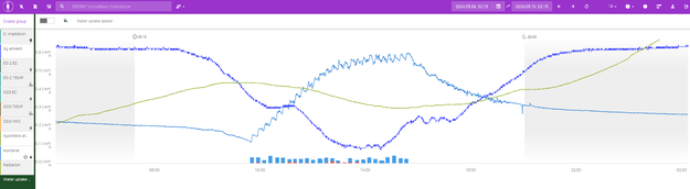 De irrigatiestrategie werd aangepast om zich te richten op het beheersen van de osmotische druk van de bloei tot de oogst, door te zorgen voor voldoende drainage en het handhaven van de juiste ΔEC- en pH-waarden. Observaties toonden aan dat takken en fruit een pulserende beweging vertoonden gedurende 24 uur, wat werd toegeschreven aan veranderingen in osmotische druk. Door irrigatie te vermijden tijdens perioden van hoge osmotische druk en te zorgen voor geleidelijke veranderingen door aanpassingen in de klimaatcomputer, kon de teler het risico op verhoogde wortel- en osmotische druk verminderen. "Zoals het groeipatroon van de bessen en de irrigatietiming ten opzichte van diameterveranderingen laten zien, omvatte deze aanpak lagere irrigatiehoeveelheden maar een hogere frequentie, waardoor het risico van verhoogde wortel- en osmotische druk werd verminderd", legt András uit.