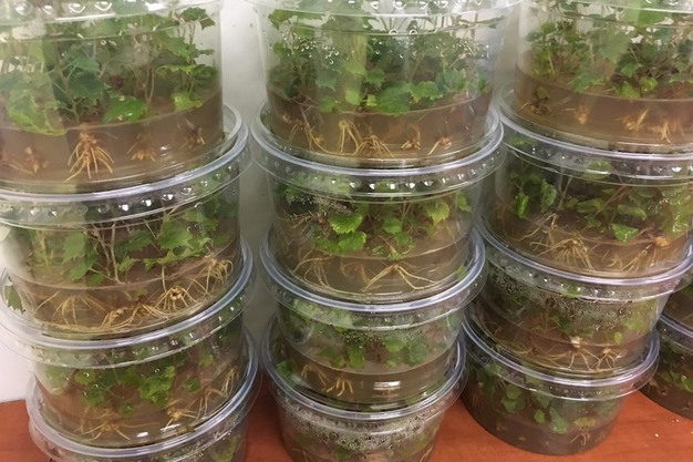 Geïmporteerde weefselkweekplanten in bakjes voor snellere vermeerdering
